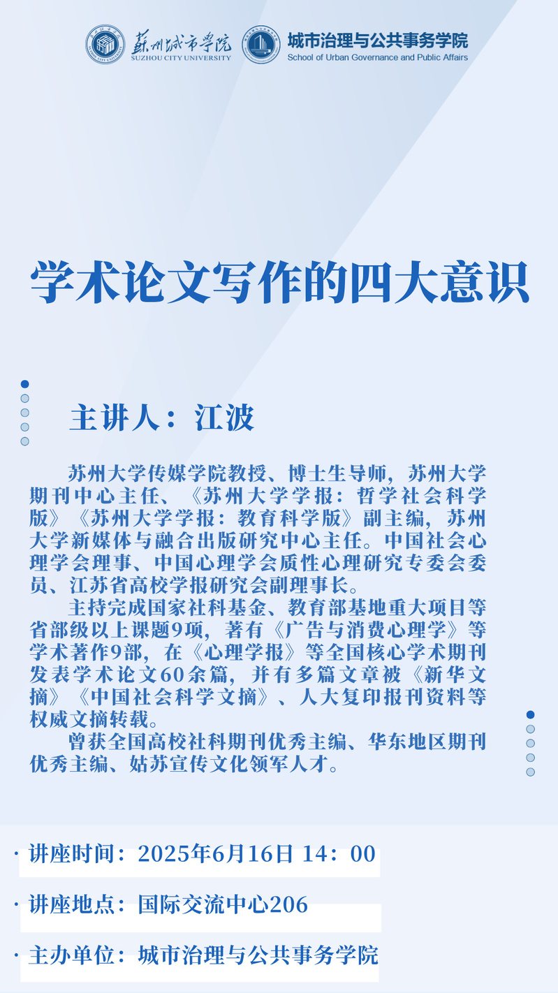 城市治理与公共事务学院讲座:《学术论文写作的四大意识》-火狐体育