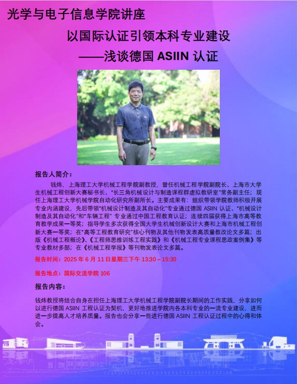 光学与电子信息学院讲座:以国际认证引领本科专业建设——浅谈德国asiin认证-火狐体育