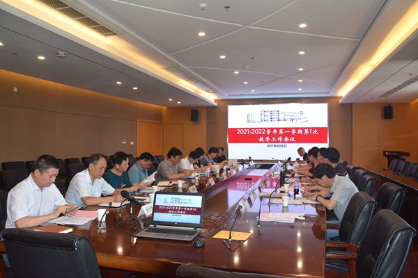 8月5日上午,2021-2022学年第一学期第1次教学工作会议在综合楼三楼大会议室召开。副院长高雷、教学工作部和各教学单位负责人参加会议。会议由施盛威主持。