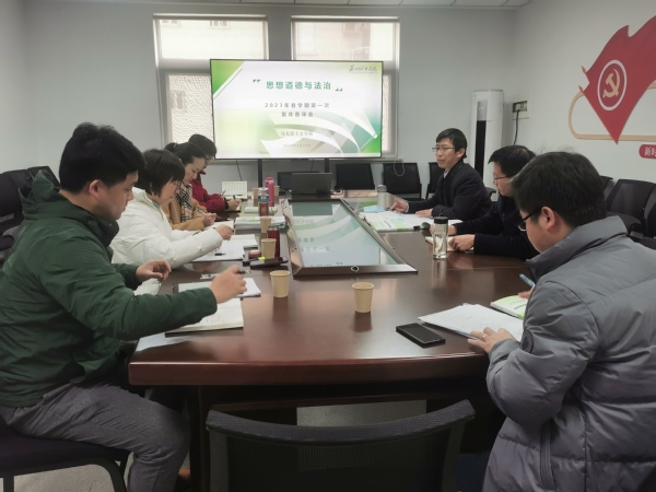 集体备课凝智慧,共研共进促教学。马克思主义学院于2月17日召开学期初教学工作会议后,各教研室主任积极组织教师举行集体备课会。从2月19日开始,《中国近现代史纲要》《思想道德与法治》等教研室以各种形式举行了新学期集体备课会,马克思主义学院副院长唐强奎参会指导,各教研室授课教师参会,对二十大精神融入课程教学、课内实践教学方案、思政课数字化改革等问题进行了深入研讨,为本学期开展各门思政课教学提供了基本遵循。