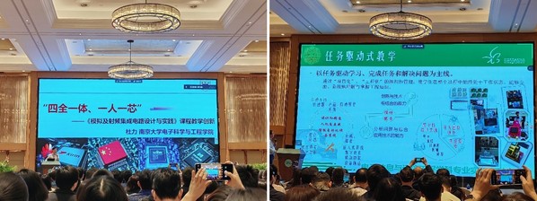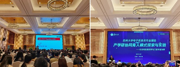 会上,来自全国知名高校的13名专家、学者、教学名师作了精彩的报告,如来自北京大学的王志军教授作了“强化大学生工程实践能力培养”的报告,李孝峰教授作了“苏州大学电子信息类专业建设 产学研协同育人模式探索与实践——以光电信息科学与工程专业为例”的报告,南京大学电子科学与工程学院的杜力教授作了“四全一体、一人一芯”的报告等。