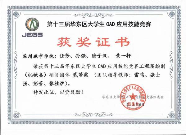 近日,由全国cad应用培训网络南京中心和江苏省工程图学学会联合主办、东南大学承办的“三泽·达索杯”第十三届“华东区大学生cad应用技能竞赛”如期举行,本项比赛为江苏省高等教育学会认定的“省级赛事”。共有来自江苏、山东、安徽、浙江、江西等96余所高校共1869名选手参加五个单项的角逐。智能制造与智慧交通学院首次参加本项目竞赛,共选拔9名选手参赛,经过激烈角逐,荣获一等奖4项、二等奖1项。
