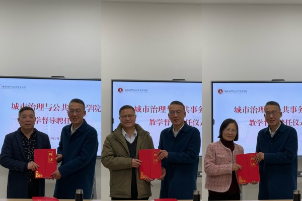 为进一步加强教学质量监控,提升学院教学水平,推动教育教学改革,城市治理与公共事务学院于2月27日下午2点在3号教学楼308会议室举行了院级教学督导聘任仪式。本次会议由丁彩霞副院长主持,校党委常委、副校长黄涧秋、学院党委书记解燕、学院副院长史新广、新聘任的教学督导以及部分教师代表参加了此次活动。