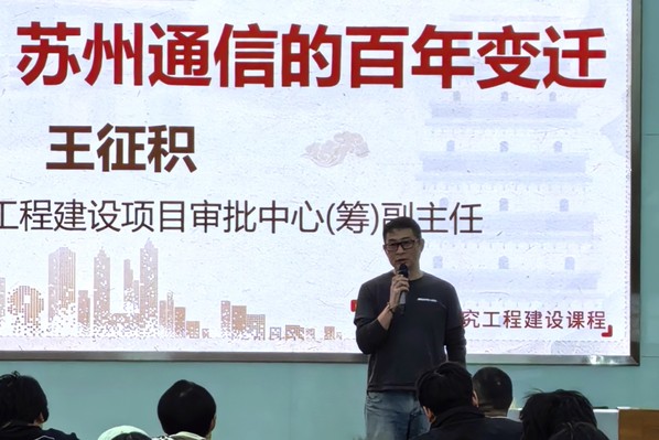 王征积沿着时间脉络,从电报、电话、宽带、个人移动通信四个维度深度剖析苏州通信业的百年发展历程。他讲述了苏州通信从早期依靠电报艰难起步,逐步实现电话普及,再到互联网蓬勃兴起,直至如今大步迈进5g智能时代的艰辛与辉煌,生动展现了科技变革对城市发展和市民生活带来的翻天覆地的影响,同时也让一幅承载着岁月记忆的苏州城市历史画卷在师生眼前徐徐铺展。讲座尾声,王征积满怀憧憬地展望了苏州通信事业的未来,并激励同学们要勇于站在时代潮头,在各自专业领域深耕细作、追求卓越,为国家发展添砖加瓦。