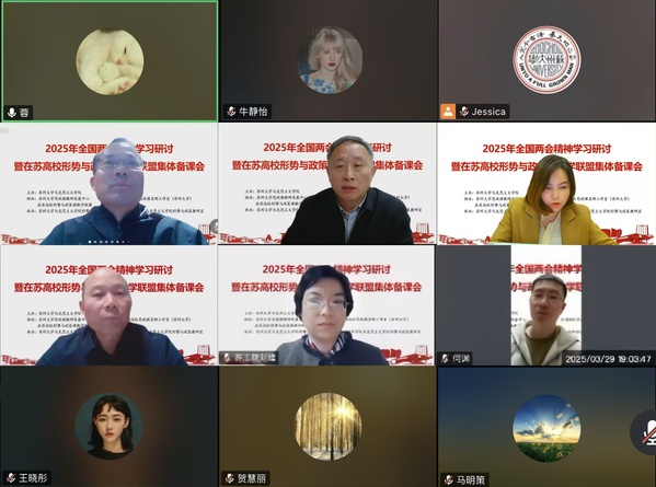 为深入学习贯彻2025年全国两会精神,推动高校“形势与政策”课建设内涵式发展,2025年3月29日,由苏州大学马克思主义学院形势与政策教研室与我校马克思主义学院形势与政策教研室联合承办的“2025年全国两会精神学习研讨暨在苏高校形势与政策课教学联盟集体备课会”在线成功举行,来自苏州大学、苏州城市学院、苏州科技大学等在苏20余所高校的课程负责人、任课教师近80人参加会议。