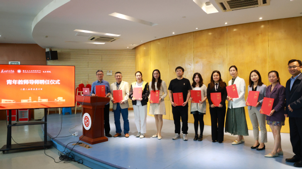 学院还为每位青年教师精心准备了《青年教师学习记录手册》,要求其定期记录听课研讨、课题进展、导师指导要点等内容,以可视化方式追踪成长轨迹,确保培养实效。仪式尾声,与会师徒在工作人员指引下合影留念。