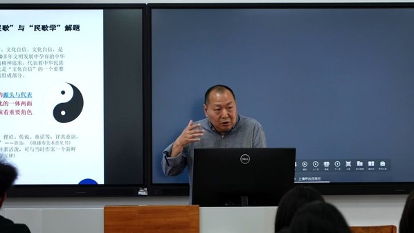 在周玉波教授的系列学术对话中,赏析与阐释交相辉映。教授通过翔实的案例举证和深邃的学理思考,与学子们展开深度互动,不仅有效激发了青年学子对中华民俗民歌的学术探究热忱,更系统培养了其审美分析与艺术鉴赏能力。周教授以深入浅出的讲授风格,将学术性与普及性有机融合,成功唤起学子们对民歌文学的研究兴趣,引导其深入理解中华文化的民间表达形态,实现了认知视域的学术性拓展。