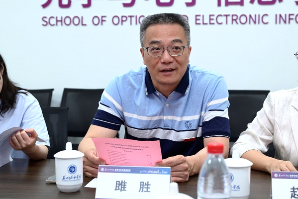 本次会议由学院副院长赵晓辉主持。光学与电子信息学院院长雎胜、联培硕士研究生导师吴丹教授、陆伟新副教授、王成琳副教授以及苏州大学2023级联合培养硕士研究生参加。