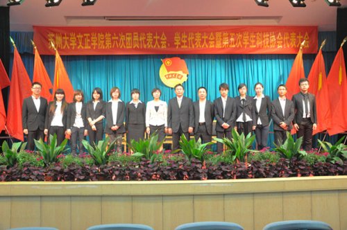 10月29日下午,我院第六次团员代表大会、学生代表大会暨第五次学生科技协会代表大会在学术报告厅隆重召开。出席此次大会的领导、嘉宾有:苏州大学团委书记王尔东老师、苏州科技学院天平学院团委副书记葛芳玉老师、文正学院常务副院长徐子良老师、文正学院党委书记吴昌政老师、学生工作处处长袁昌兵老师、校学生会副主席徐驰、校科协理事长夏旭宏。参加本次大会的正式代表214人,列席代表32人、特邀嘉宾28人。