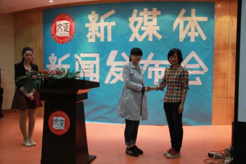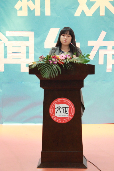 首先,团委副书记袁艳对此次发布会发表讲话。她强调了新媒体的使用与班级量化考核的联系,肯定了此次发布会在推进网络新媒体在学生生活中的普及,加强学生互动,推动学院的信息化建设方面的作用。