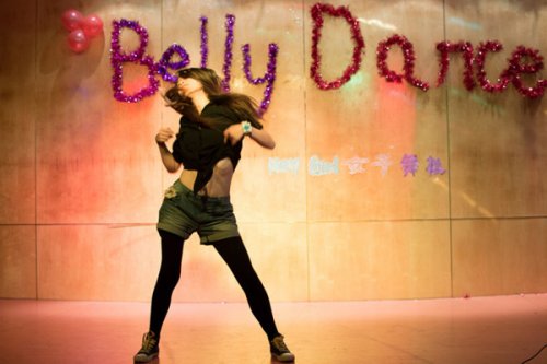 11月9日晚6点10分,伴随着摇滚的歌声,活动中心202内hey girl女子舞社举办的belly dance 晚会在精彩的开场舞中轻启。
