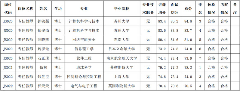 根据《苏州城市学院2024年度下半年高层次火狐体育的人才招聘公告》,经过试讲、面试考核、资格复审、心理测试、体检、政审等程序,拟录用以下8名同志,现公示如下: