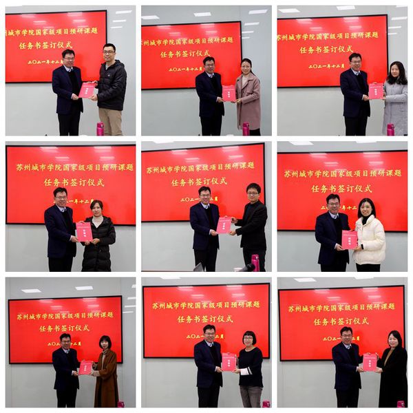 会议举行了2021年苏州城市学院国家级项目预研课题立项任务书签订仪式,每位立项课题向高雷副校长递交立项任务书。