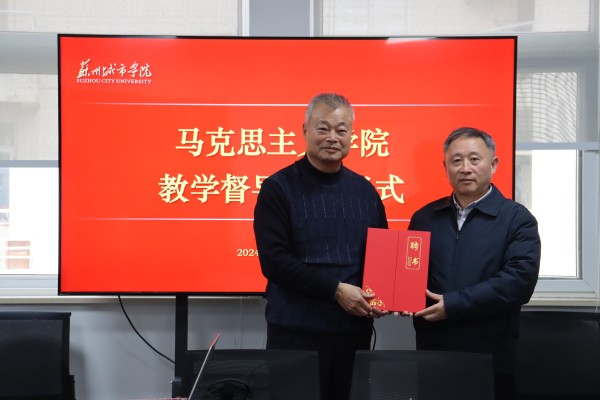 解笑首先介绍了戚福康副教授的工作履历,戚老师深耕思政教学三十余年,长期讲授各门思政课程,教学经验丰富,曾被评为苏州大学“两课”优秀教师。退休后被聘为苏州大学马克思主义学院教学督导,对思政课程教学具有很深的感情。随后,陆丽代表学院宣读了聘用决定,田芝健向戚福康颁发聘书。